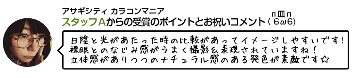 中央に向かって菱形のような模様があり、あれが自然な瞳を演出してくれています。