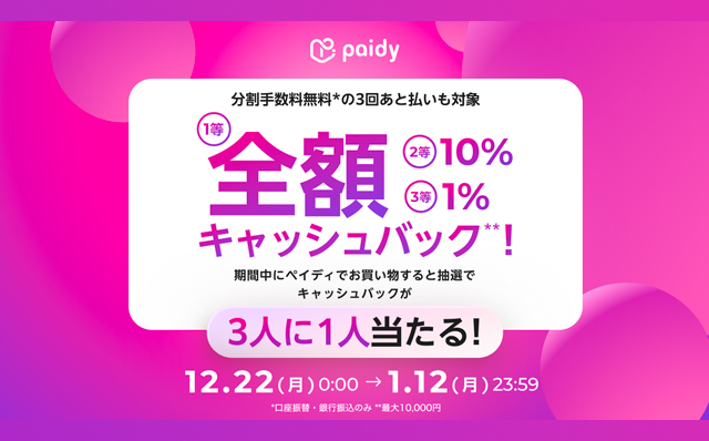 paidyキャッシュバックキャンペーン2025.12.22~2026.1.12