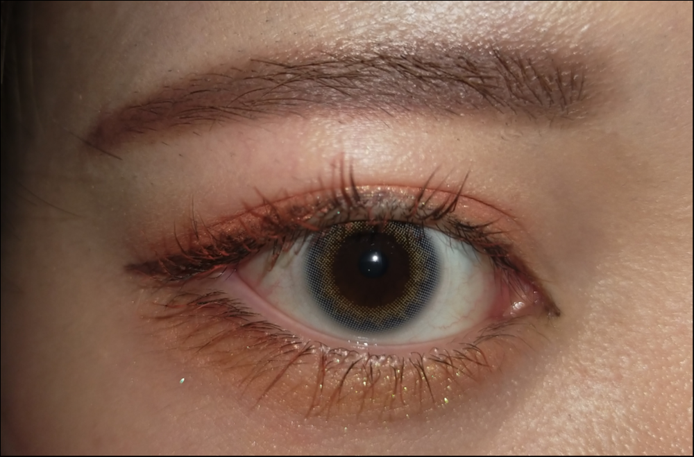 内側のライトベージュが瞳に溶け込むナチュラルハーフレンズ。