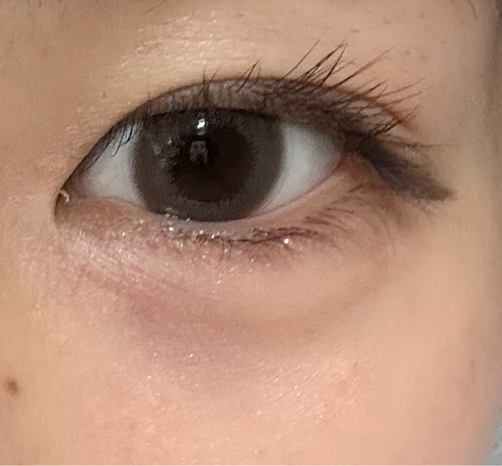 茶目ですが自然に瞳の色が明るくなり、大きさも宇宙人にならずとても可愛かったです🩷ただピンクというよりはグレー味が強かったです!キラキララメと相性良さそう✨