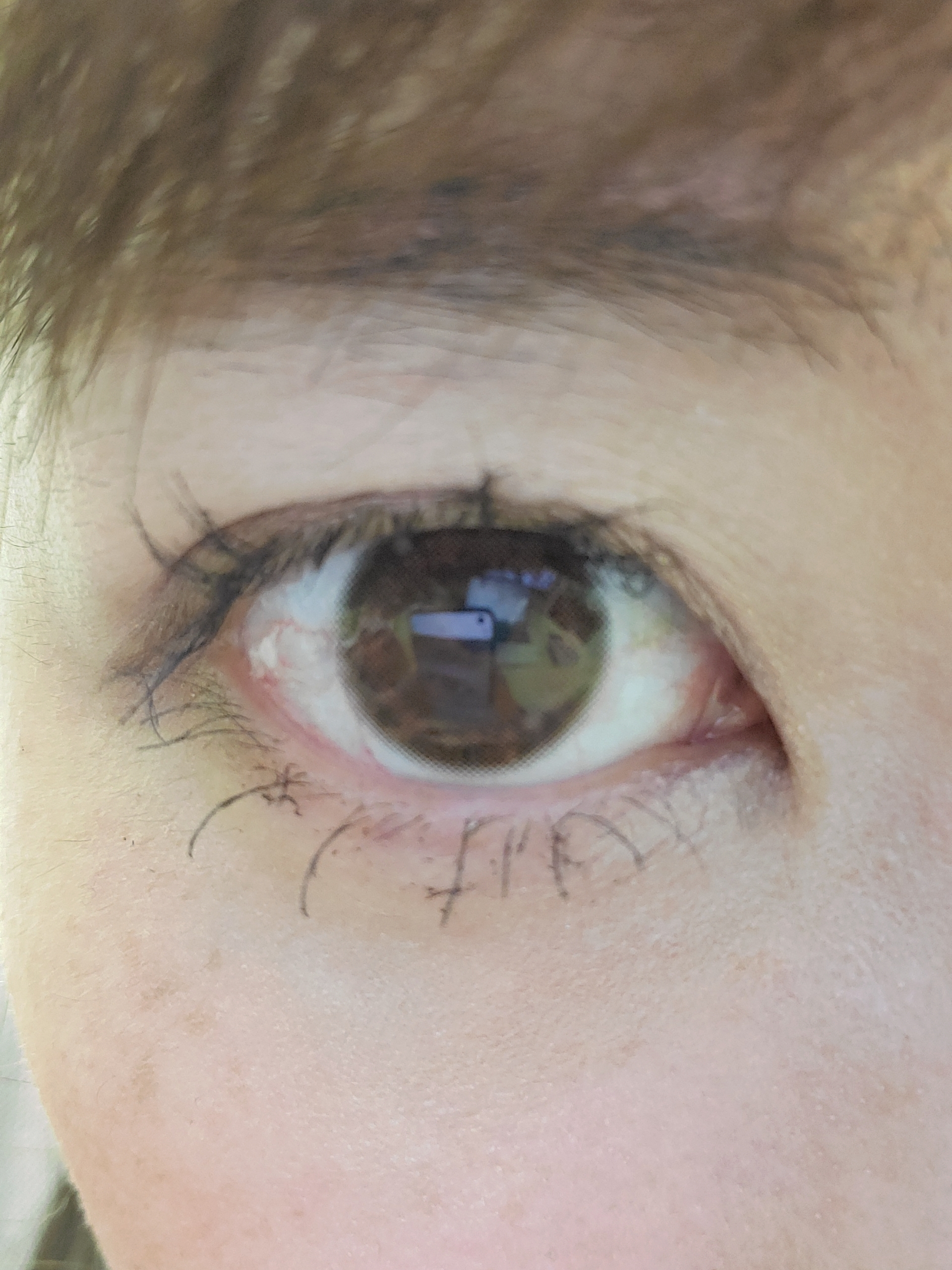 写真は横から朝日が当たっている状態です。もうずっと黒コンからは離れていたのですがTwitterで話題になっていたので購入。黒コン!!!という感じは全く無く、ディファインのような感じで透明感があります。私の元々目のフチが黒いほうなのでなんの違和感も無く、すごくナチュラルなデザインと大きさなのでカラコンバレも少ないと思います。アラサー&オフィスには丁度いいです◎