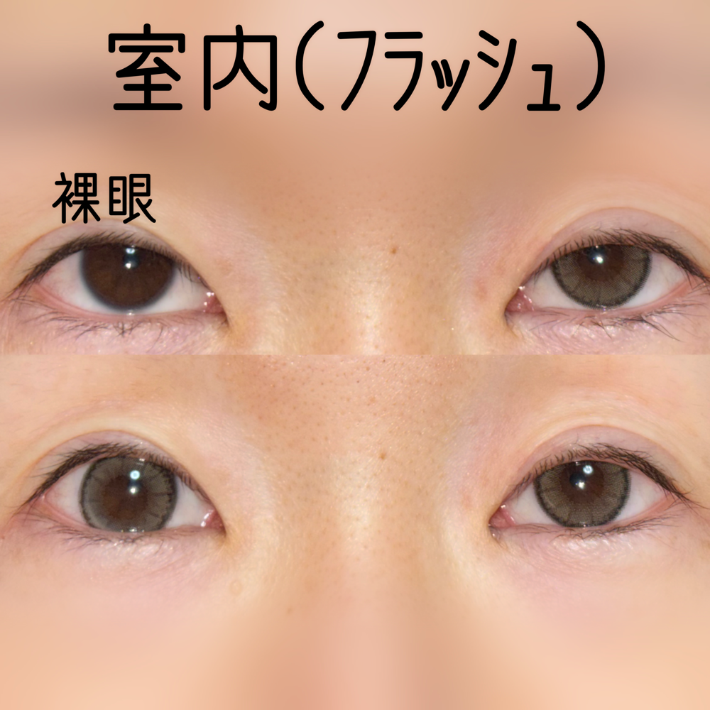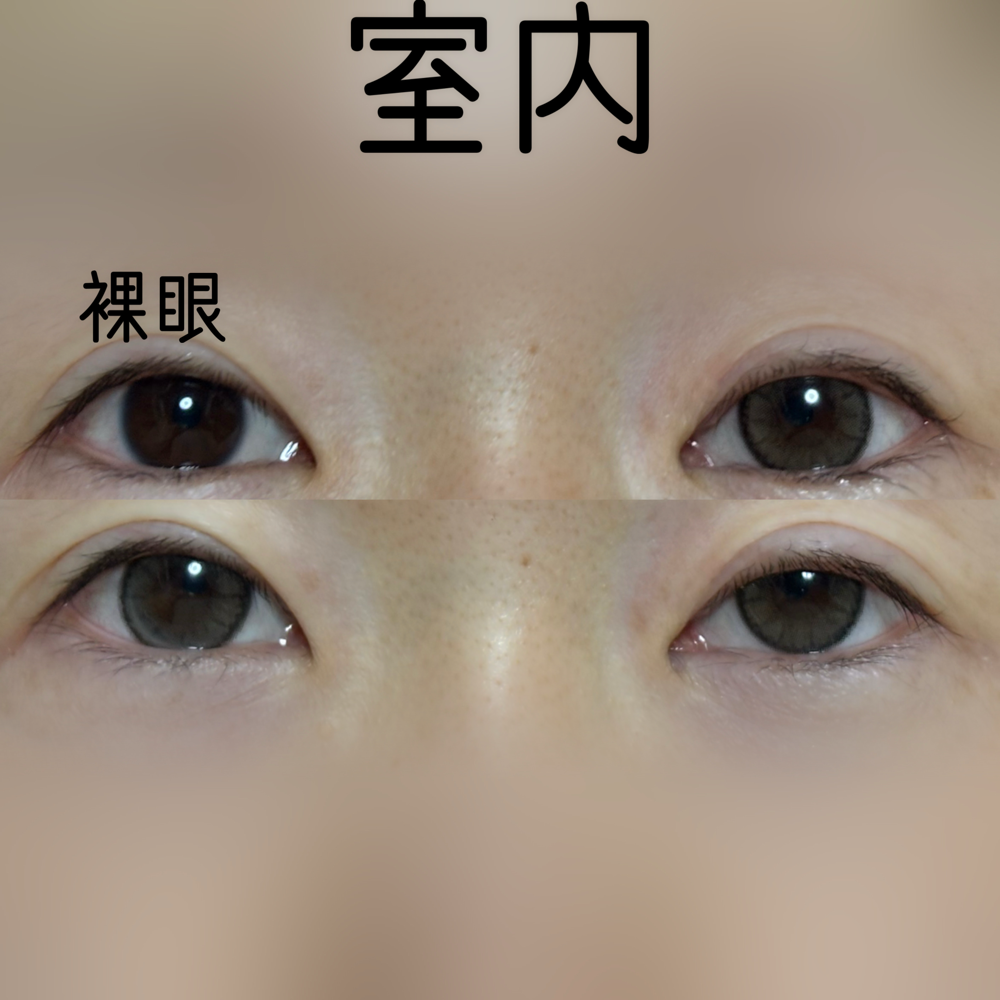 写真1枚目がダズルグレー装着、2枚目が裸眼です。