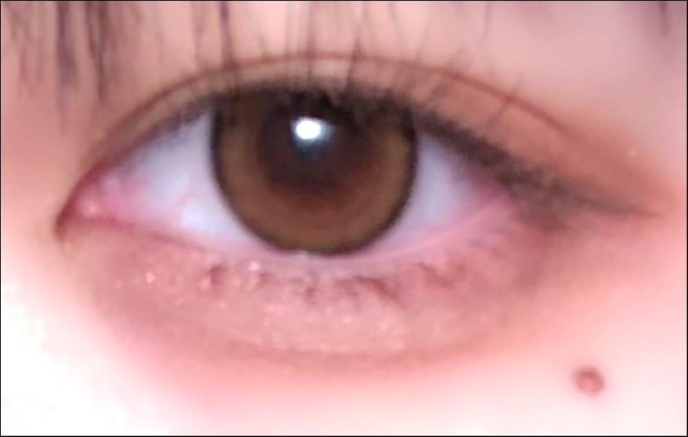 瞳はこげ茶で、思ったよりもオレンジ味が発色したので、自然光で撮った写真ですが化粧をすれば馴染んで可愛いです。