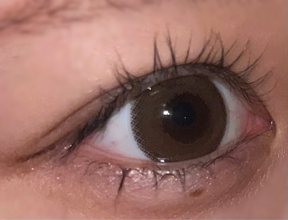 ちゅるんとしてるけどクッキリしておらず、自然に明るい色の瞳になれました。アップで見るとぼかし縁の柄が気になりますが、対面する程度なら目立ちません。職場にもつけていける。