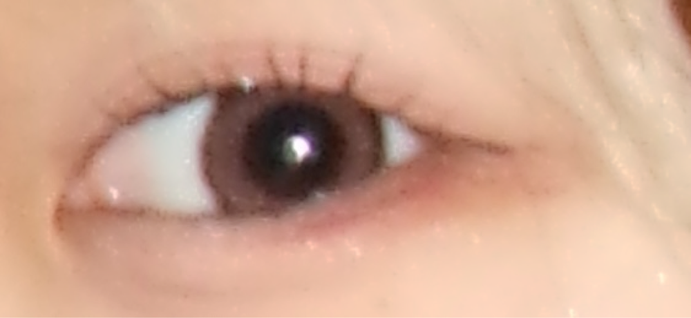 元が黒目。よく見ると可愛いモーヴピンクになりました。黄みのあるカラコンが苦手なので、茶色っぽくならないのが嬉しい。カラコンだとバレたことないです。仕事でも使います。