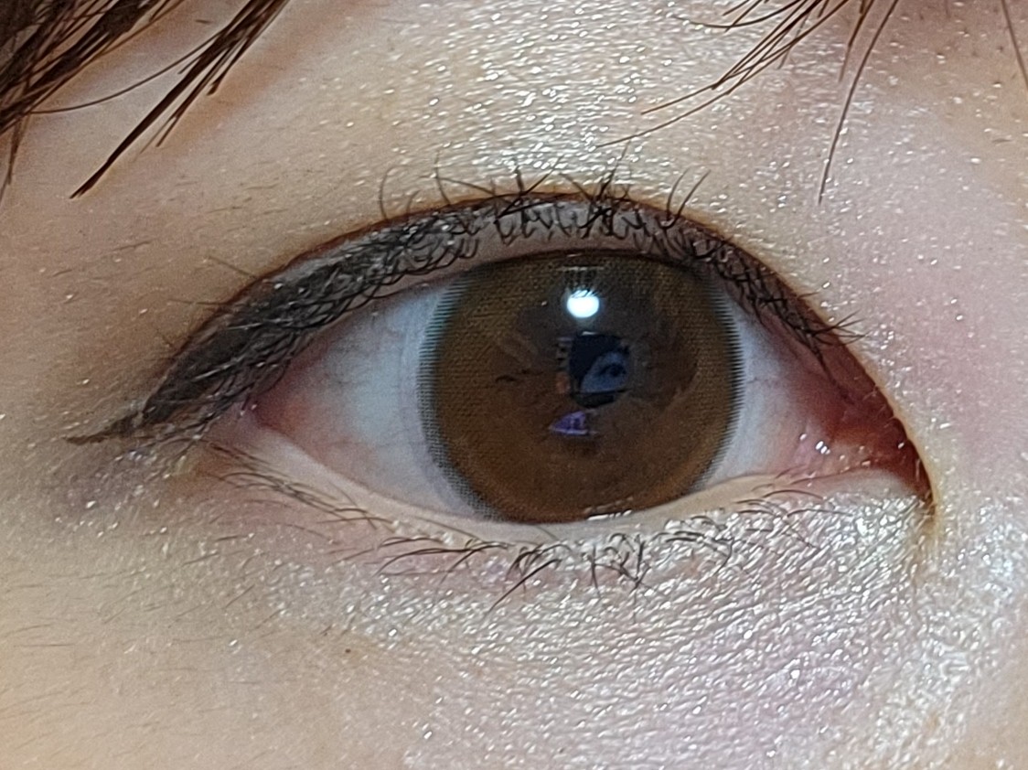 レンズはみたらし団子みたいな色味でブルベの私に合うか心配でしたが、着けると色素薄い系になりました!