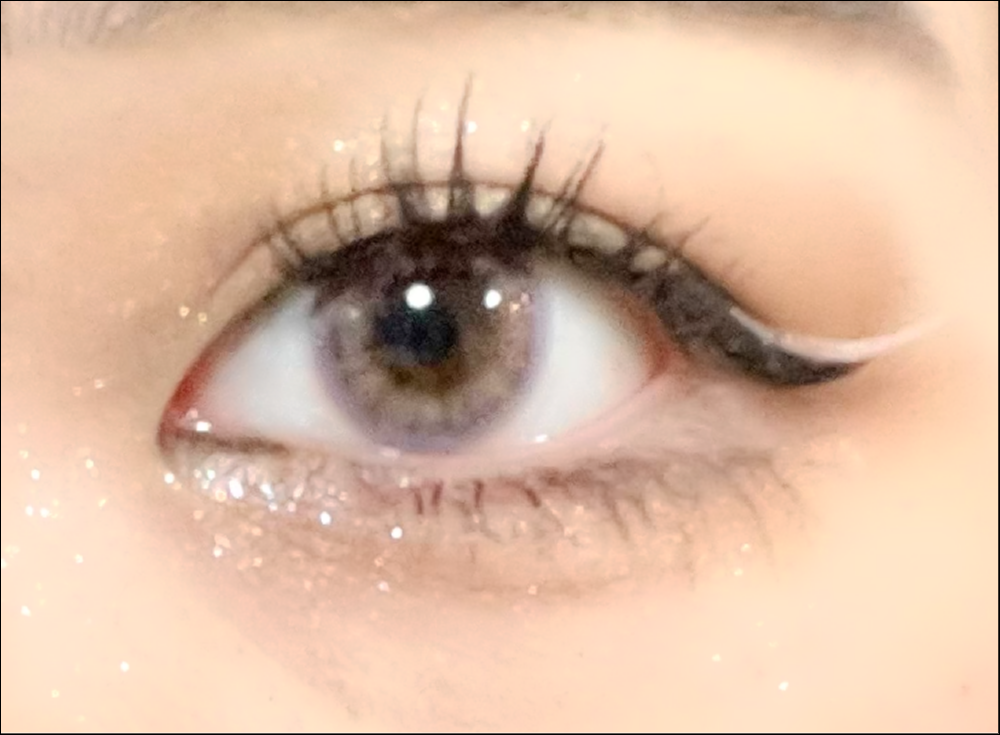 逆にバキバキに決めたい時はぼやけてしまうかな……。アイラインもわたしのように黒ではなく多分ニュアンス色で引いた方がこのカラコンの雰囲気にマッチしていいと思います。