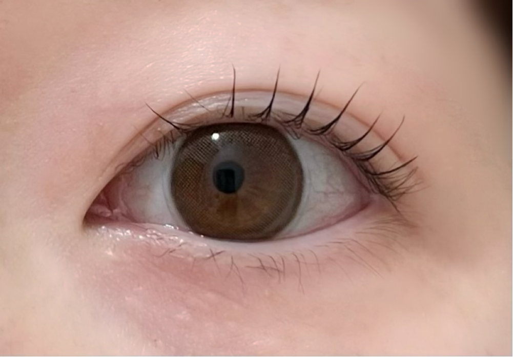 画像どちらとも、下が裸眼で上が装着後になります。比べるとだいぶん大きさ変わるんですけど、メイクしたらめっちゃ馴染むしプリクラでも宇宙人にならないです!同じくチューズミーのチョコブラウンよりもちゅるんとしてて自然です。