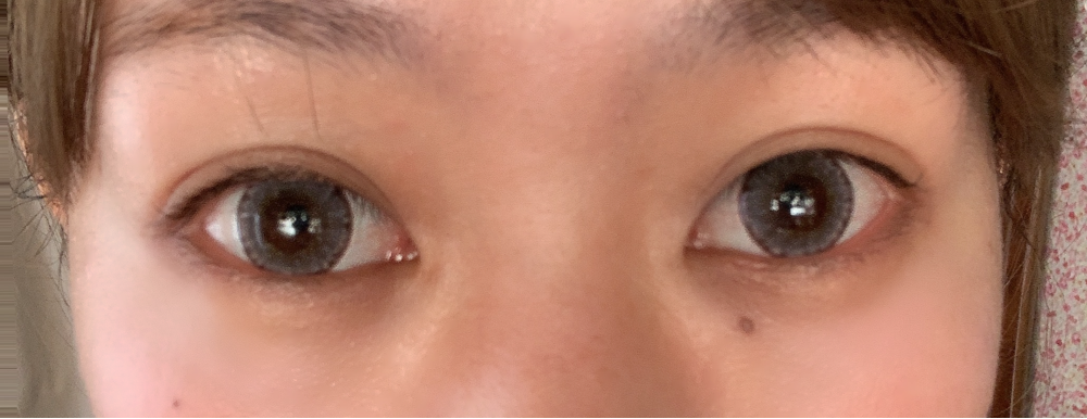 めちゃくちゃ可愛い。縁あるからグレーだけど目小さくならないし、派手すぎない。14.2今まで似合わなかったけど、今回は初めて似合うカラコンに出会えた!写真は、室内、フラッシュ、インカメ