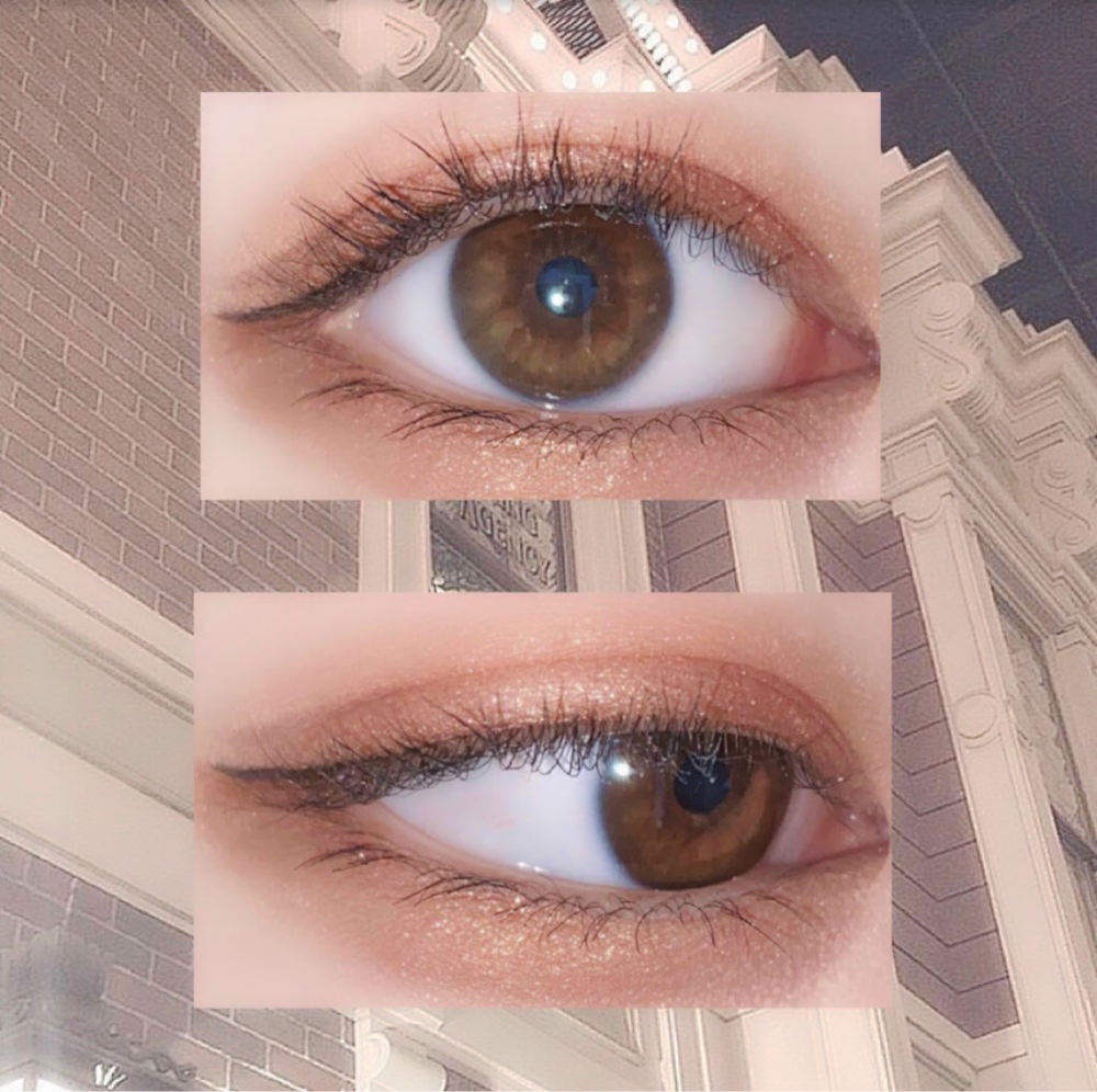 着色直径かなり大きめだと思っていたけどちゃんと白目の余白出来て盛れるし、わたしは裸眼がとても茶目だから黒フチふわっとして馴染んでいてとても好き