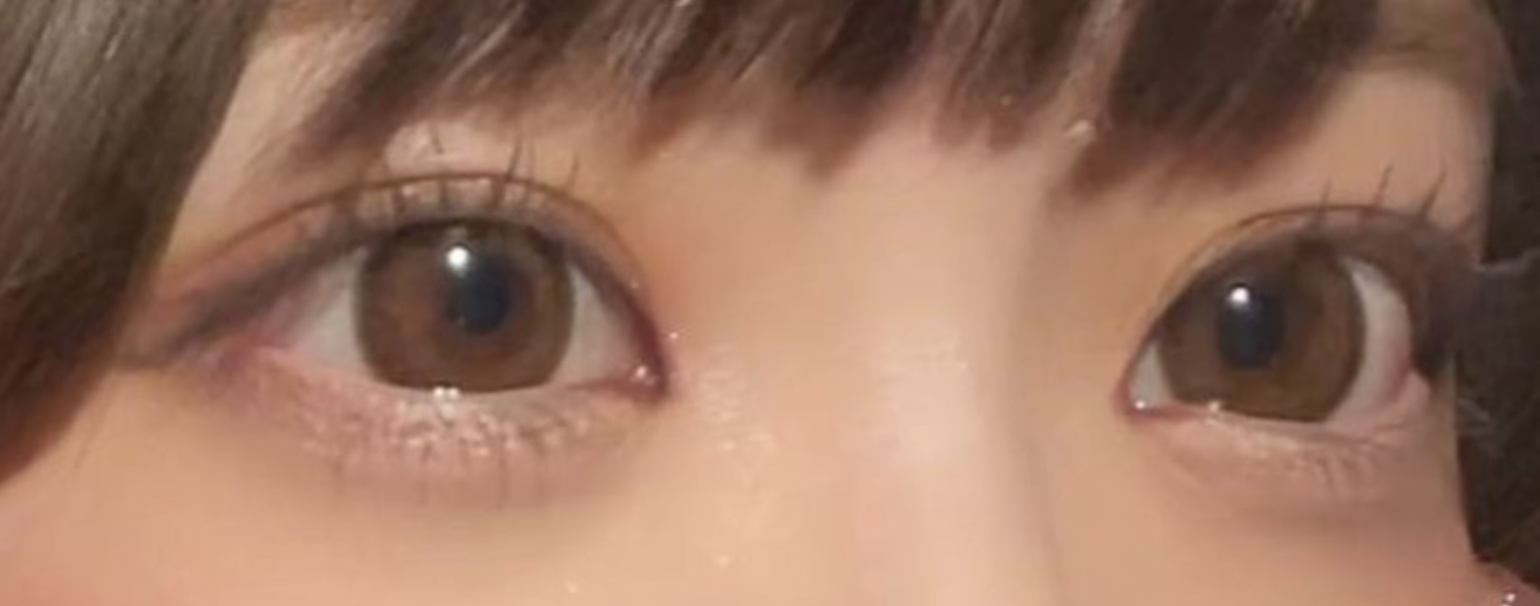 裸眼が焦げ茶色なので少しフチがくっきりしてひとまわり大きくなった感じになりました。