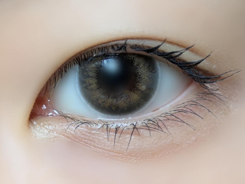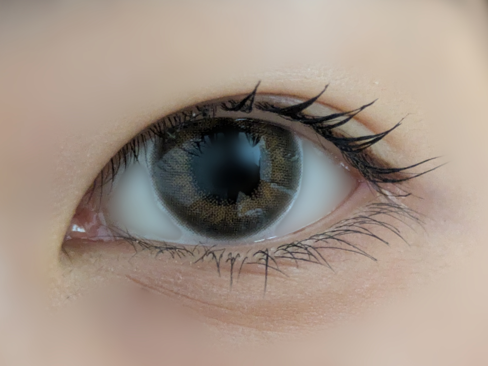 黒目だけどちゃんと発色するしフチも柄もいい感じにぼけてて丁度いい👍イエベブルベ関係なくつかえそう!透明感でるし儚い感じでかわいかったけど、着色は体感小さめだった