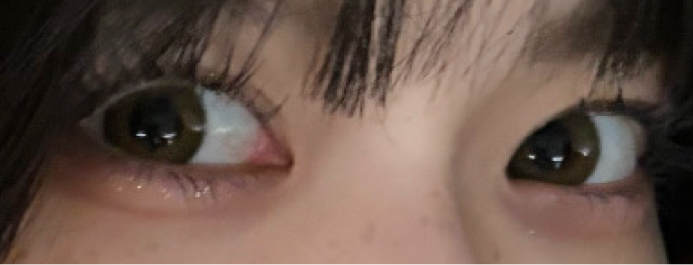 私は黒目です。フラッシュと普通の写真です。 フラッシュで撮ればめちゃくちゃ可愛いです。 通常の場合はナチュラルな透け感になります