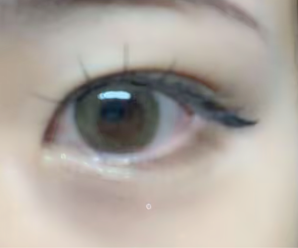 黒目奥目小粒目です。ナチュラルメイクにも強めのメイクにも合う気がします。奥目小粒目の私にとって、大きすぎず自然に盛れるので良い!!色が明るめなので目がぱっとするのも良いです。目が痛くなったりすることはありませんでした。