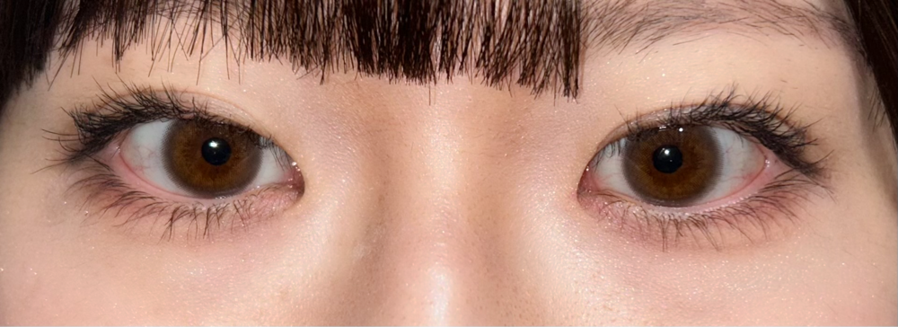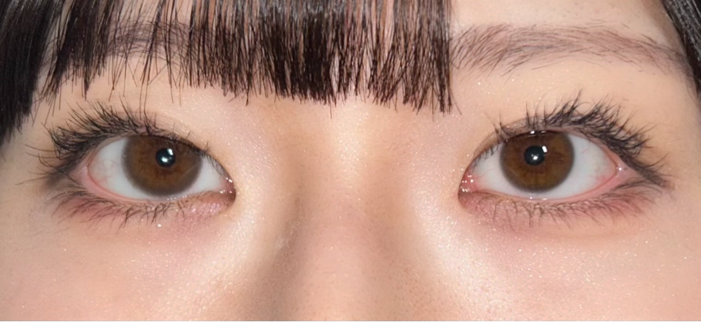 左:ムードグレージュ 右:裸眼(黒目がちの焦げ茶目)
