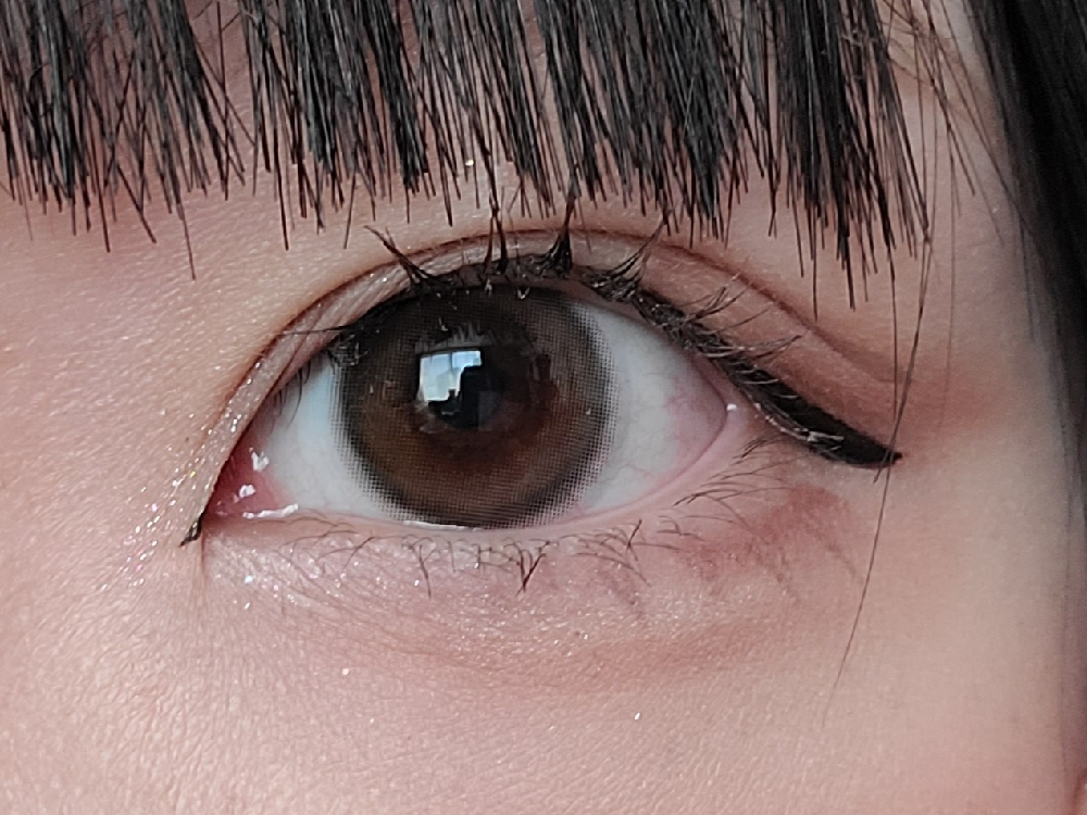 写真だと上にいっちゃっててわからないけど、一部暗めになってて自然な不思議な虹彩の目に感じるよ!