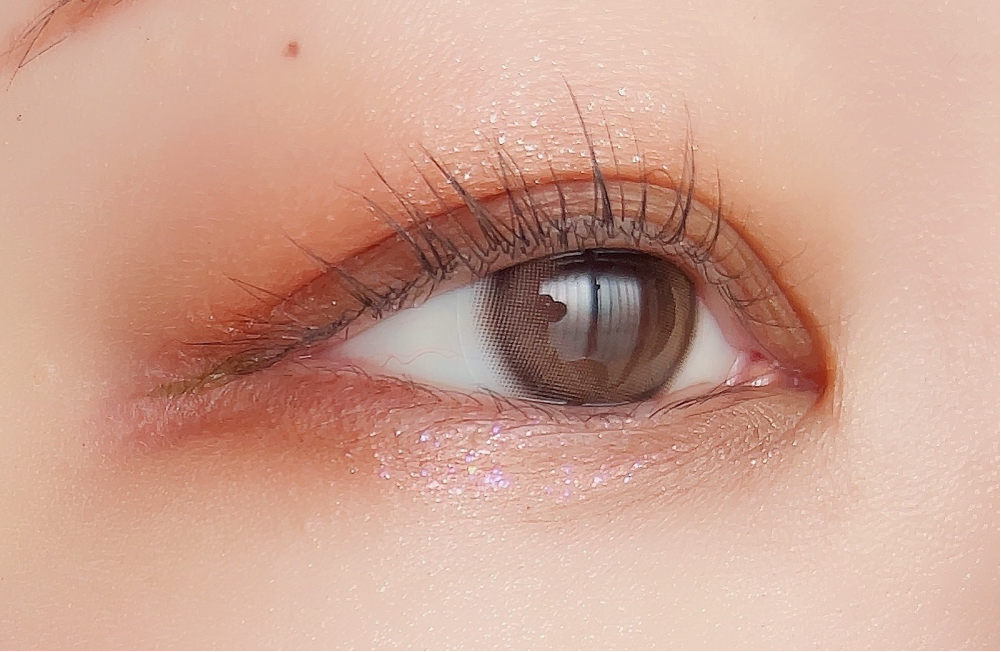 水光カラコンみたいにハイライトがあるのに、水光カラコンほど派手じゃない。ほんのりハイライトで、色もアッシュ系。フチがぼやけててくっきりガッツリしてないのもいい。