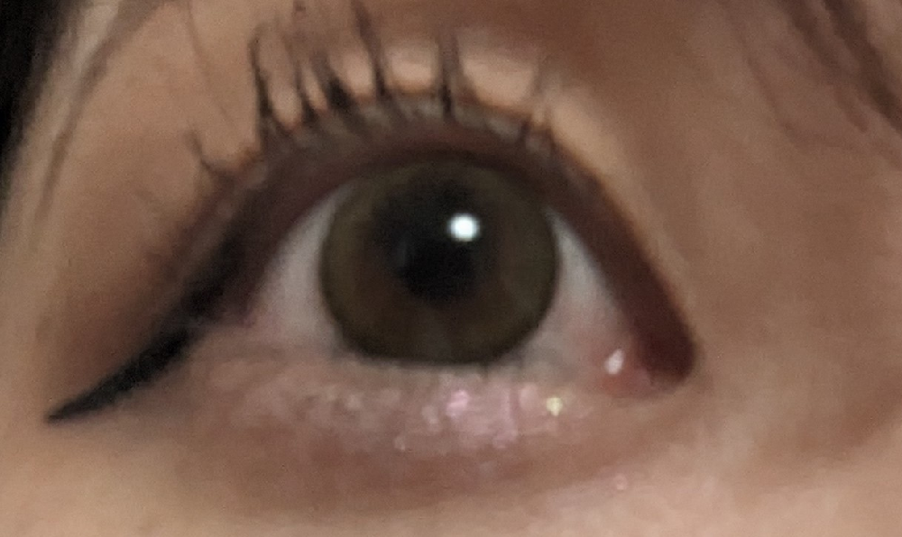 ライトカーキブラウンということで緑系のカラコンなんですけど、通常ではそこまで緑ではないです。光が当たると緑に見えます。なので、屋外だと写真等や他人目線で目立つカラコンかもしれません。でもよくカラコンかわいいって褒められるので不自然じゃないと思います(多分)