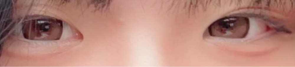 縁がちょっと太めでしっかり!!って感じの印象!!可愛いんだけど可愛いんだけどね?!次からはもっと着色直径小さいヤツにして細縁を選ぶよー❗️😿 左ノーマル自撮り 右プリクラ(プリ機忘れちゃったごめんなさい🙏🏻💦)