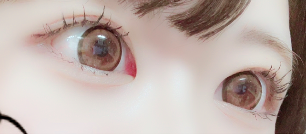 最初は思ったより内側のオレンジのカラーが強く馴染むか心配なのと驚きましたが、装着すると目に馴染んで屋外・室内どちらでも盛れました!!発色も良く黒ふちがきっちりとしてるのでちゅるんと可愛い印象で、アイドル系のカラコンだなーと思いました。乾燥もしにくく快適で、絶対プリクラでもしっかり盛れるカラコンだと思いました!最近のカラコンは大体1700円前後ですが、この値段でこんな可愛いのが買えてしまうのでとってもリピありですしおすすめです。(1枚目が明るめの場所で2枚目が暗めの場所です)