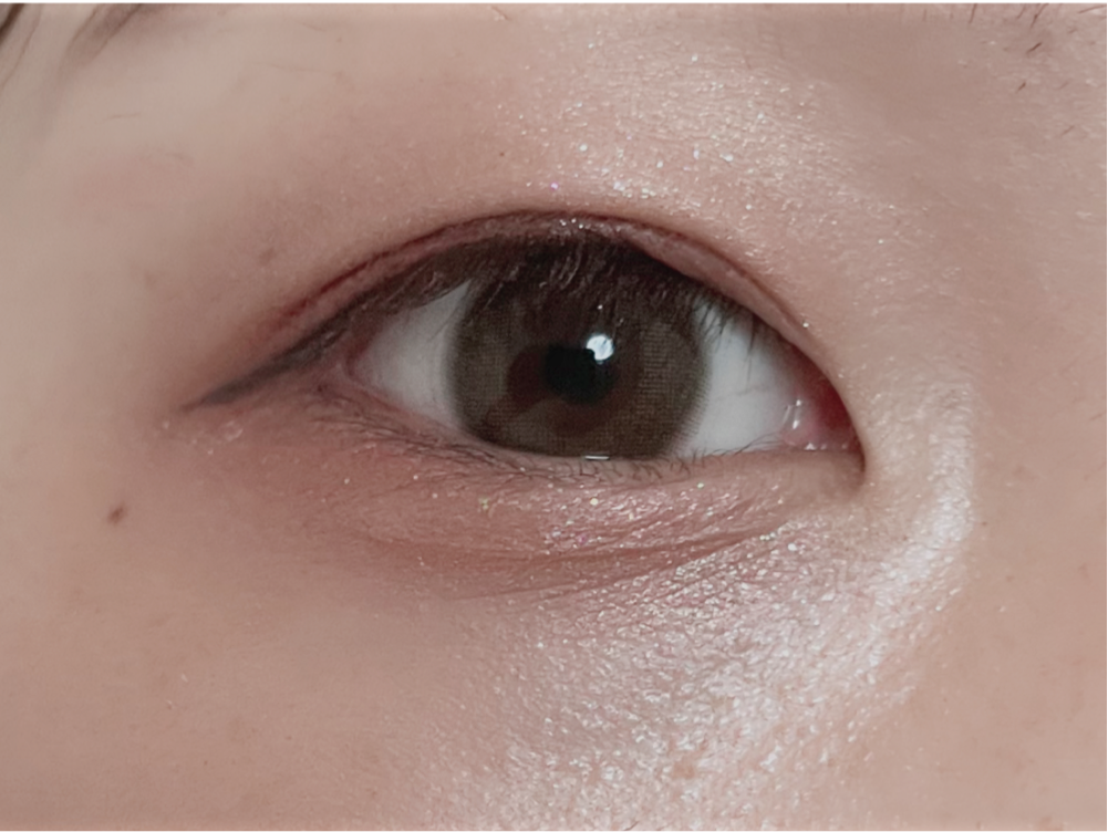 元々茶目なのでデートトパーズの方が馴染みがいいのですが、ツイントパーズは透明感を出す!!という感じです。なので付けるとカラコンの模様がじんわり浮き出てうるうるしたような目に見えます!