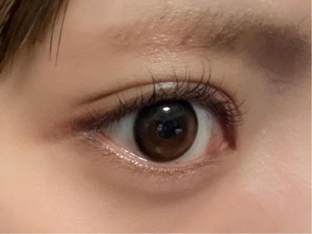 裸眼は焦げ茶色ですが、こちらのカラコンはナチュラルに盛れて水光レンズ特有のちゅるんと感が出せるのでお気に入りです!✨