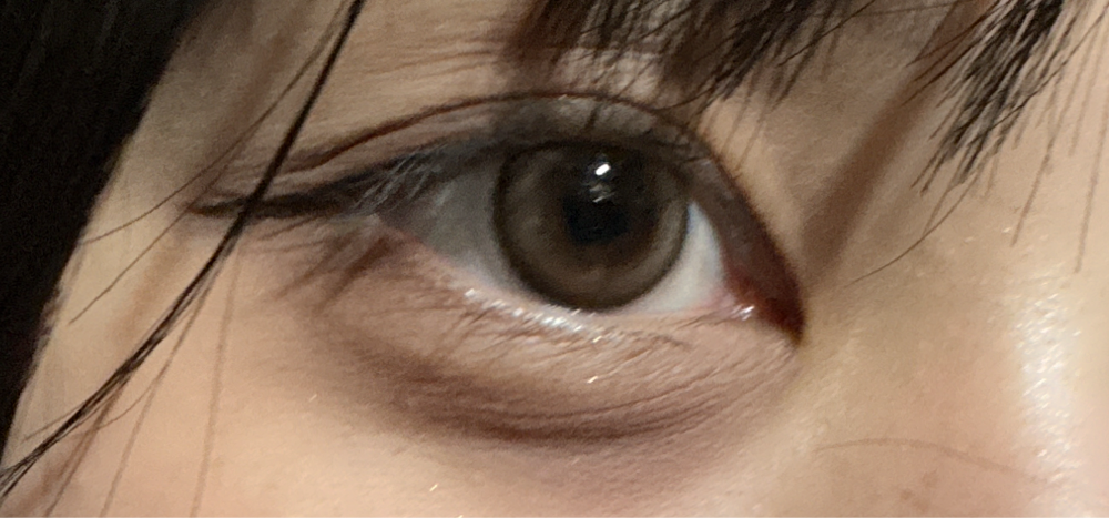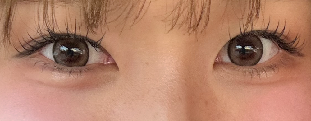 細フチと黄身寄りブラウンのカラーでトーンアップしてかわいかったけど、ポツポツとあるハイライトは完全に潰れました……キラキラ感はないけどうるきゅるな瞳にはなるって感じです。