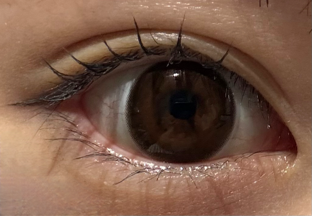 焦げ茶のフチでかわいい。めっちゃ盛れるしつけ心地も良くて1日付けてたけど痛い&乾燥が全く無し✨️校則がめっちゃ厳しくない限りはバレない!体感サイズも13.8👍リピ確