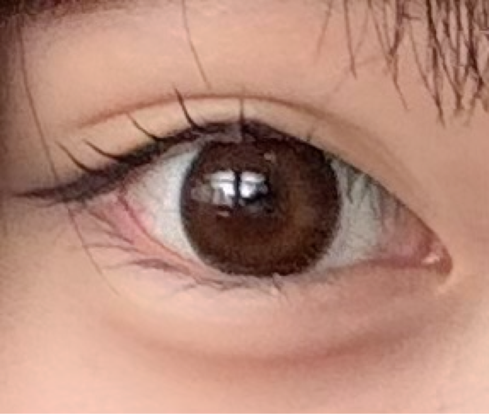 焦げ茶の私の目だと内側のリングの色がオレンジブラウンっぽく発色する感じ。赤茶というか。
