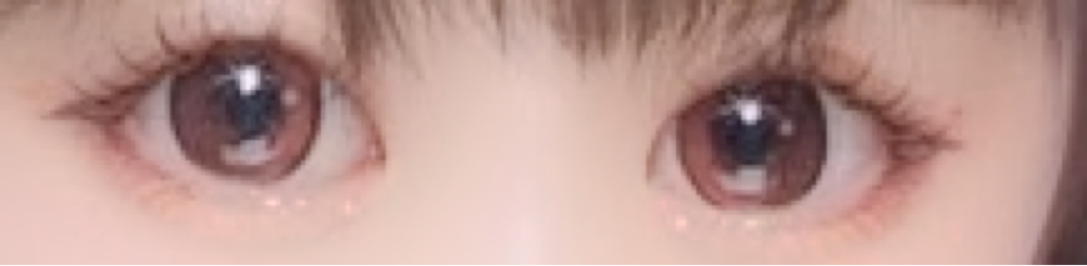 裸眼茶目の私でこんな発色!水光の部分がしっかりピンクで他の部分は焦げ茶と明るい茶色。細ふちがしっかりしててちょーーーーかわいい!ちゅるちゅる目になれます。元々超モテコンのツヤもてチェリー愛用者だったから超絶タイプです👍🏻🩷水光の部分くるくる回るけど左右違っても全然気にならないです!添付してあるプリが多分左右差あるけど全然大丈夫👌🏻👌🏻✨プリで撮るとピンク感はほぼなくて明るい茶色になる(ハルセカは)着色直径13.6だからでかすぎなくて毎日使いに最適!愛用決定!!