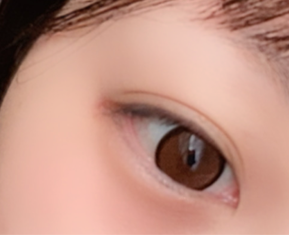 大きめですが、瞳の透明感はとても良く、同じ着色直径のカラコンより瞳が生き生きていると感じました。カラコン感はするので、学校に着けて行くのは難しいかなと思います。