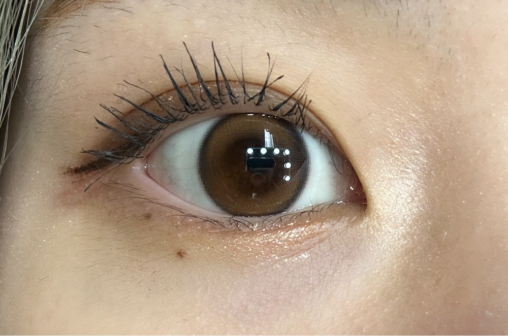 明るめブラウンのダブルハイライトカラーが瞳に立体感と輝きを与え、