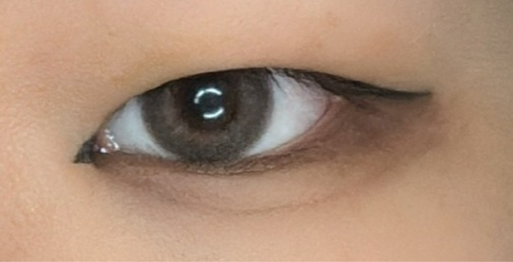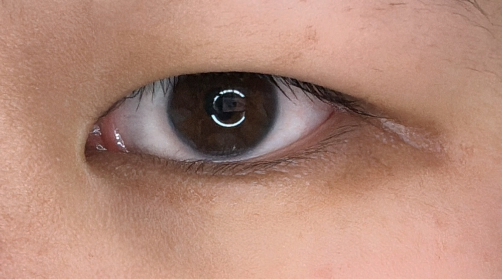裸眼はほぼ真っ黒で若干三白眼になりやすいです。写真は太陽光の下でちょっと遠くから撮りました。2枚目が裸眼です。