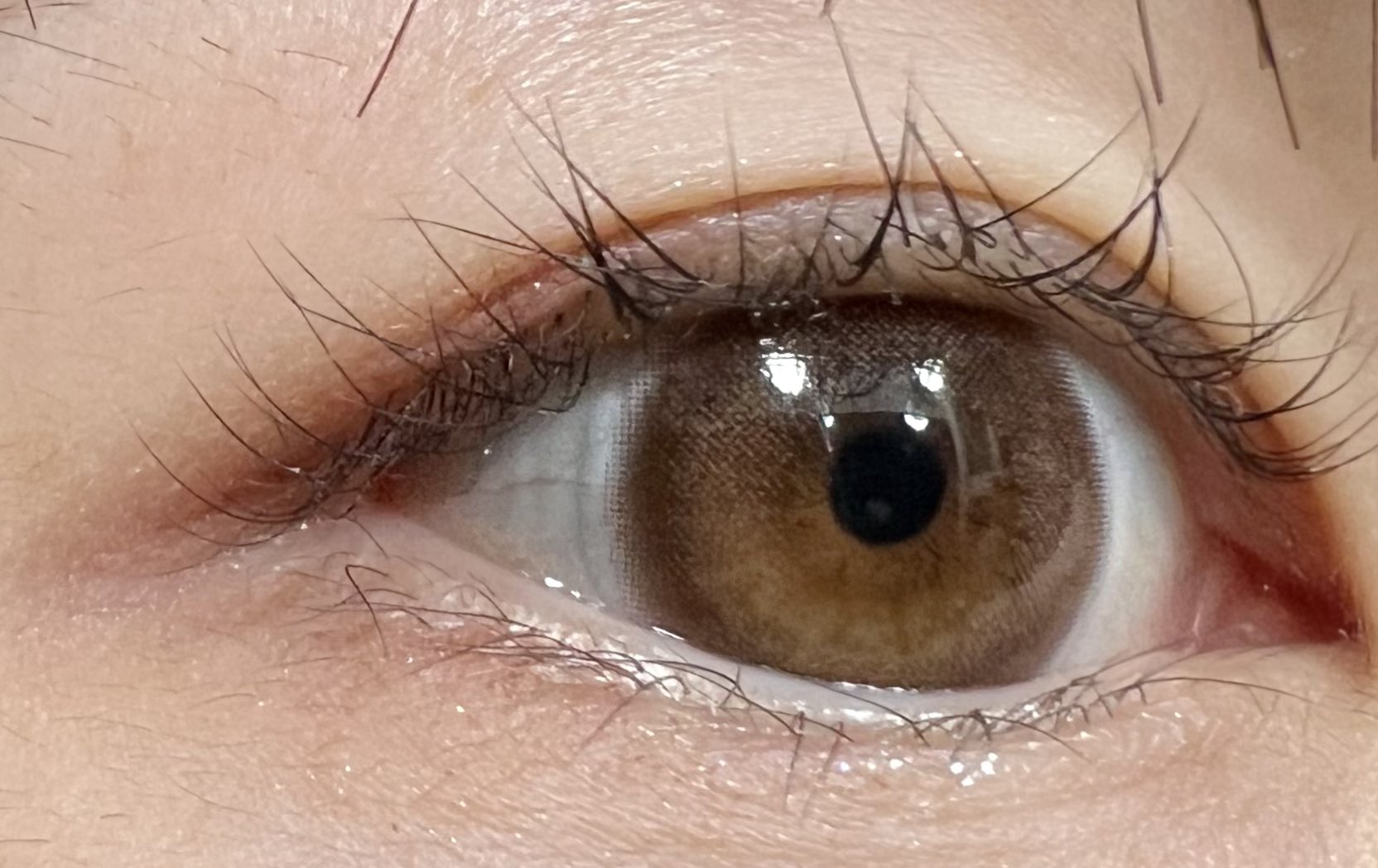 わたしにしては着色直径が大きめだったのですが、パキッとしたブラウンではなかったので自然なきゅるきゅるめめになってうれしかったです😭