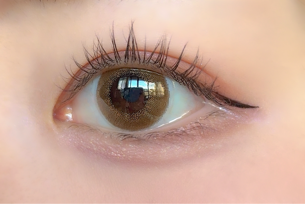 裸眼黒目だと黄味のある明るめのブラウンに発色しました。真ん中の明るい部分のおかげで立体感のある目に見えます!
