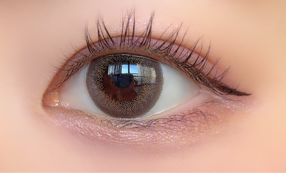 裸眼黒目が着けるとグレージュっぽく発色。ブルベに似合いそう。