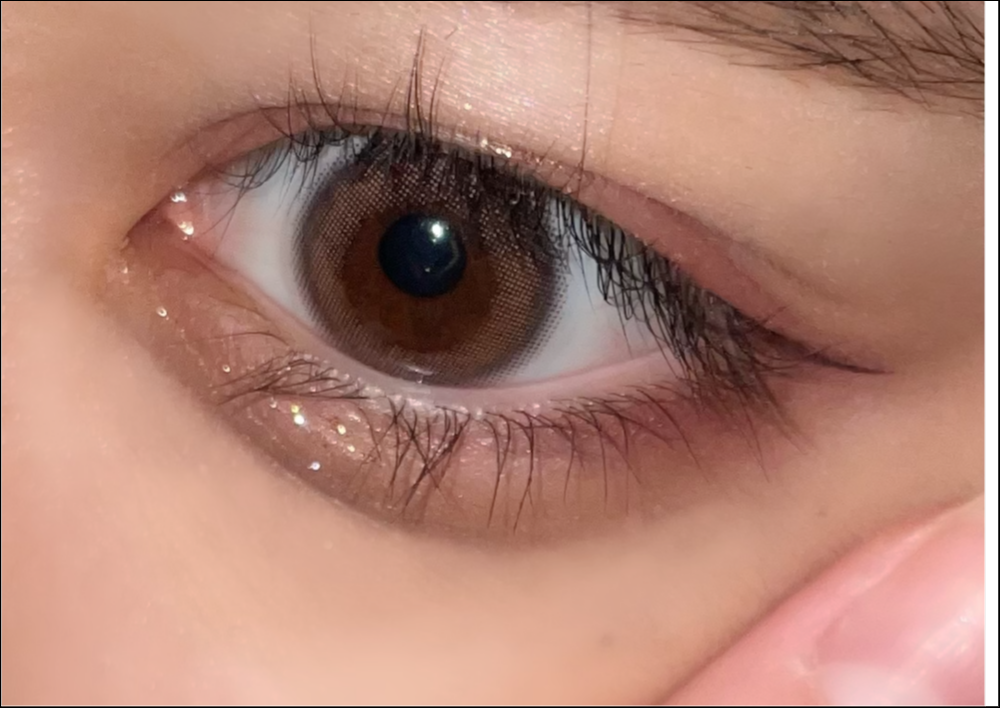 まっくろ黒目なので、ちょうどいい明るさの可愛い茶色になりました。近くで見るとカラコン感は強めです。