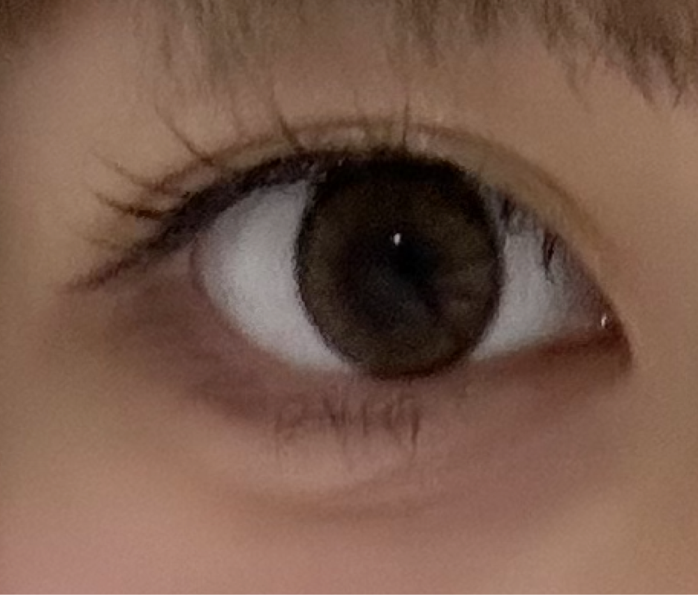 1枚目裸眼、2枚目着用後です。これがんばって上向いて室内光取り入れて、やっとこの水光感?がでるかんじで、普通に室内だったらほぼ裸眼と変わらない茶色のコンタクトって感じでちょっとショックだった😭特に、わたしは目の横幅が人より大きめなので、思ったより全然小さくてちょっとみすったかもーーー、でも小粒目の人でも似合うってことだし、ナチュラルに目に光はいってくれるから気に入る人は気にいると思う‼️私みたいに目が大きめで、大きさ大きくなって欲しい!ってひとは向いてないかもな