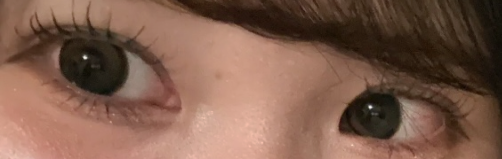 黒目だからかあまり発色せず…💦カラコンが回って明るい部分が上に行くとただの黒コン、暗いところで見ても黒コンって感じでした(т-т)でも太フチだから甘めな感じになってかわいい!