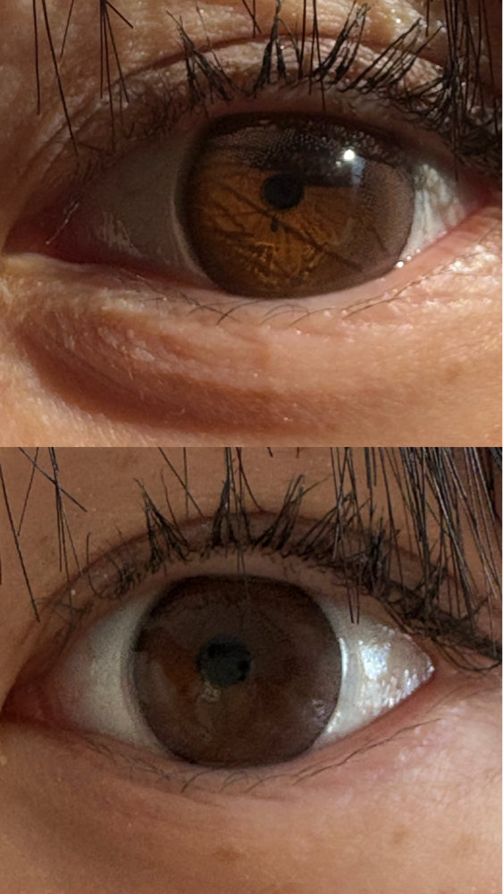 裸眼が黒に近い焦茶なのと他の口コミもあってあまり発色しないんじゃないかと不安でしたが、つけてみたらピンク感が程よくあって目がきゅるきゅるして良かったですദ്ദി˶ー̀֊ー́ )