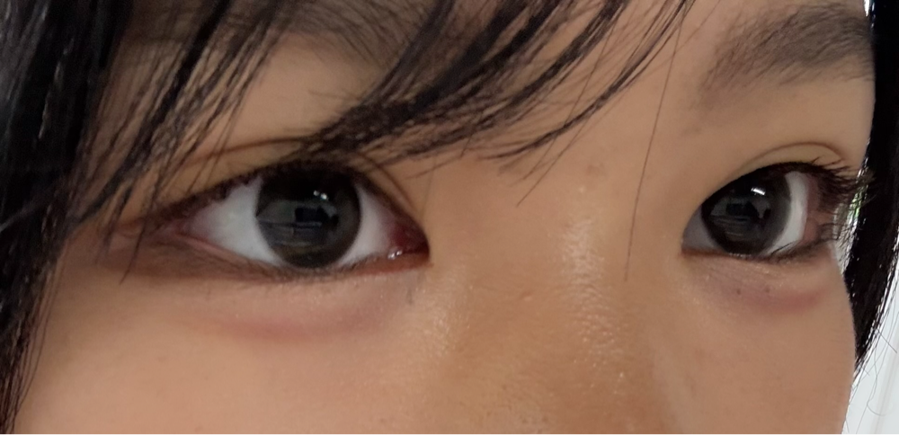 写真の左側(右目)だけカラコンつけた状態