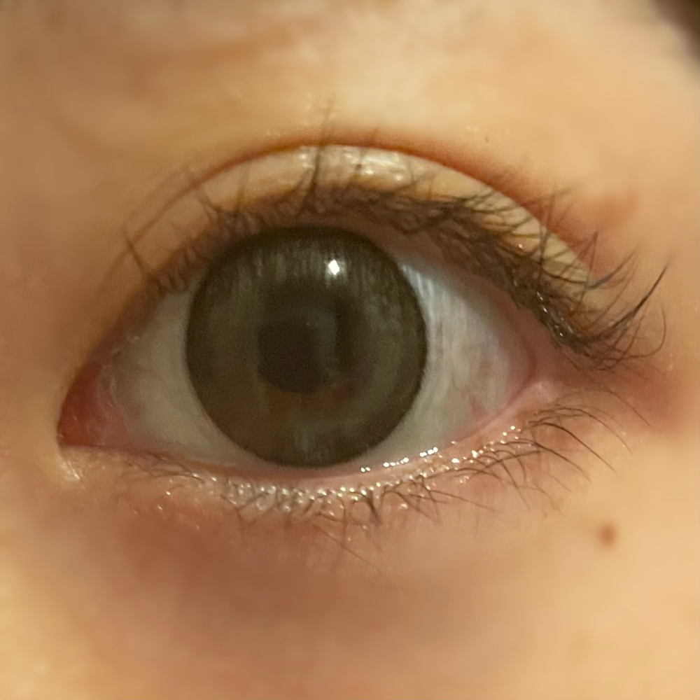 くすみカラー×ぼかし細フチのおかげで自然に盛れました!!個人的に黄金比率のカラコンを見つけられた気がするので大満足です🎶 (焦茶目/室内光)