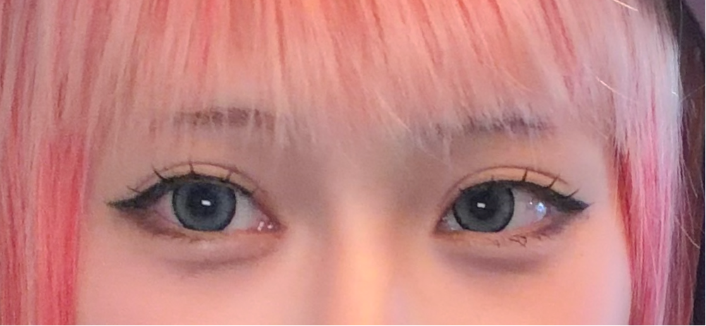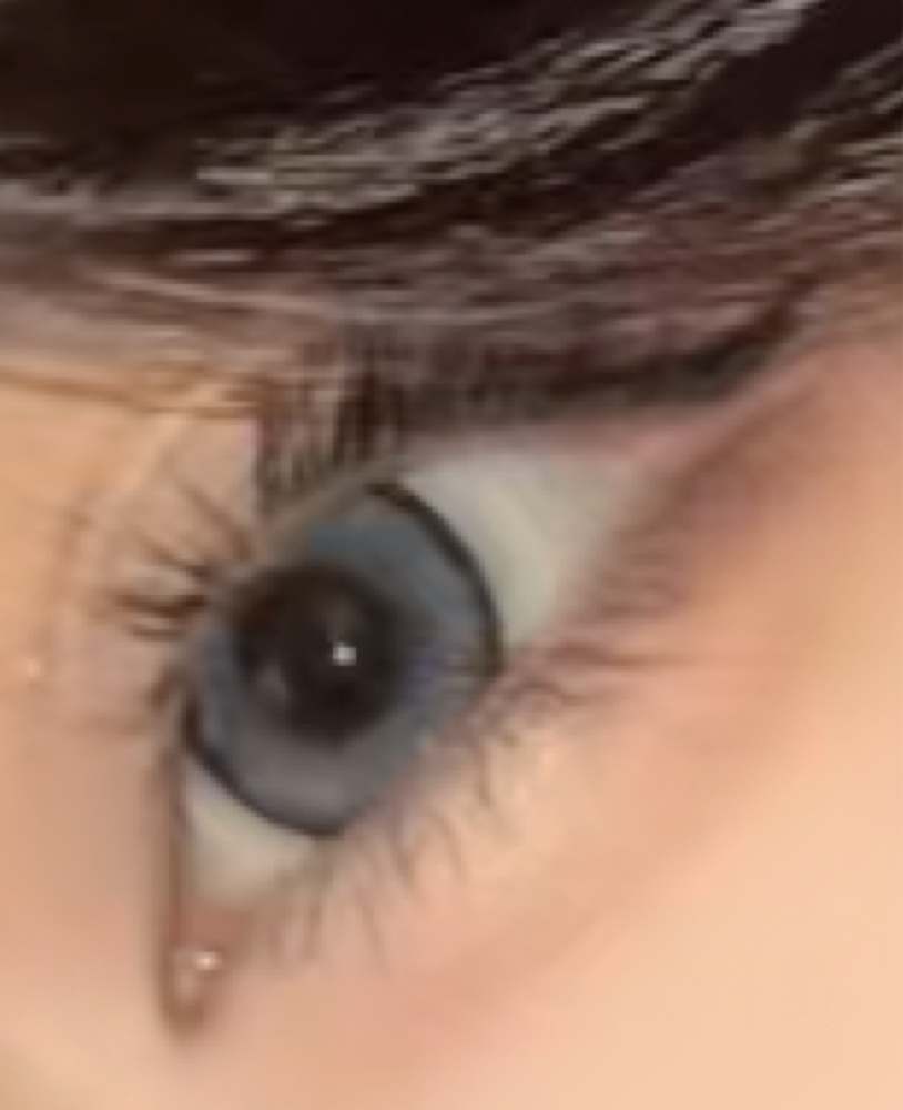 裸眼が黒目なんだけど、今までの青カラコンの中で1番発色良い‼️