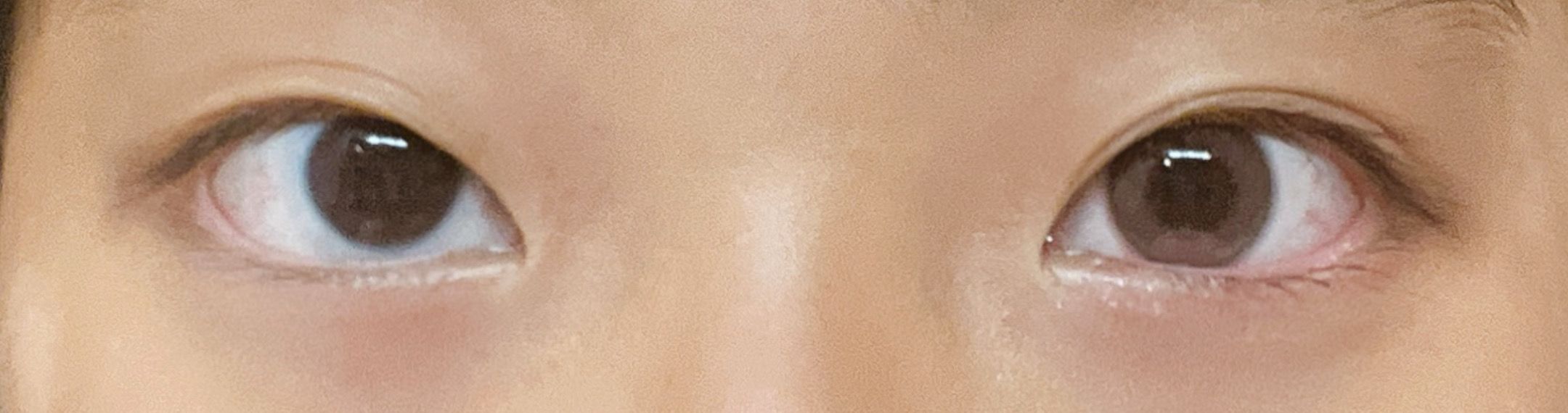 1枚目室内明かり左側裸眼、右目カラコン