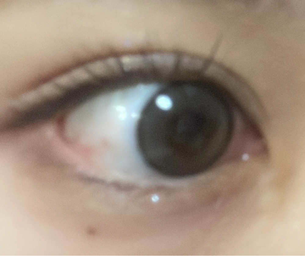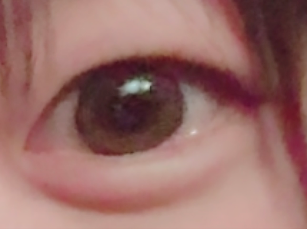 裸眼は黒目で、左は自然光、右は室内での写真です!
