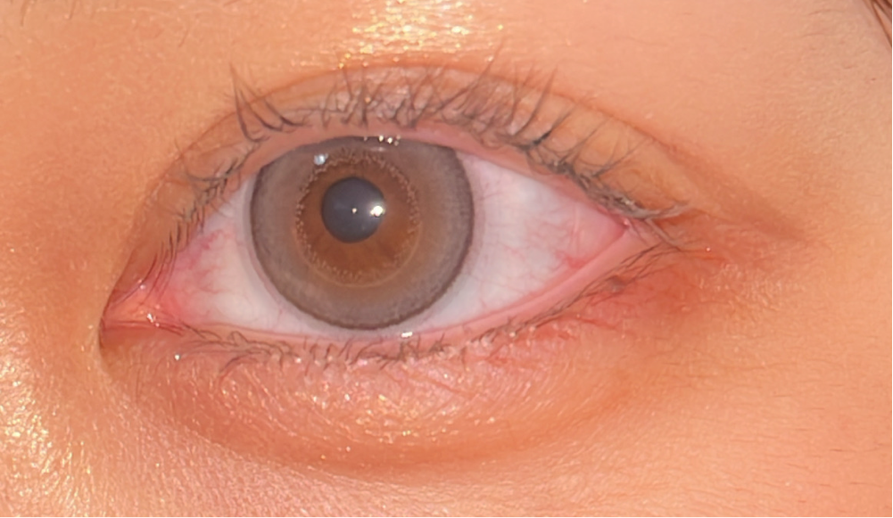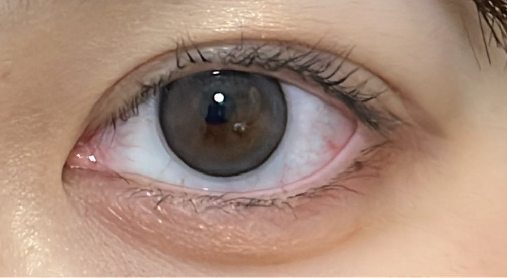 元の目は茶目ですが茶目にも浮かない自然なグレーカラコンという感じです♪優しい雰囲気のグレーで普段使いしやすいです!!