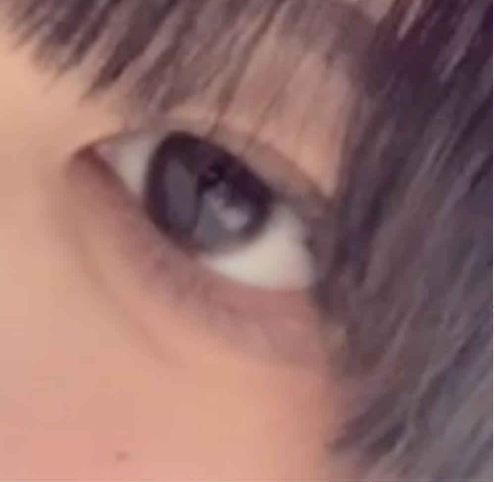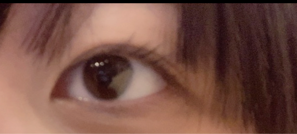 初カラコン!鏡で見るとでかく感じたけど写真だとちょうどいい。裸眼がひとまわりでかくなる感じでナチュラルでとってもいいです。かわいいです。また買います。左裸眼で右カラコン装着後です。