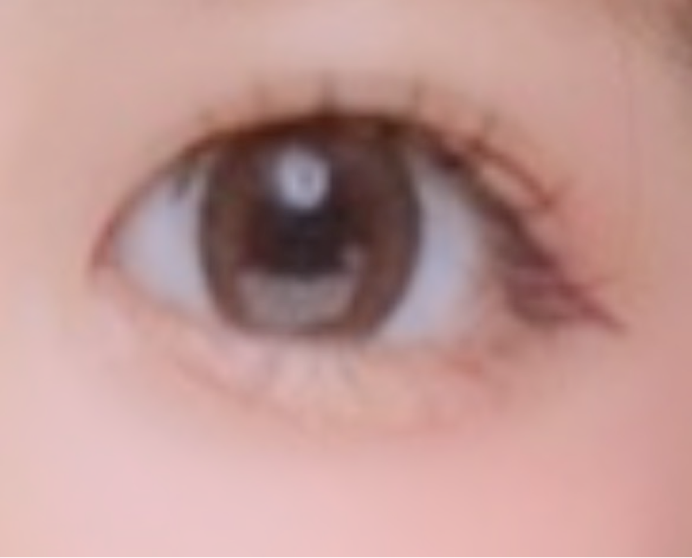 黒目が少し大きくなって、肉眼だと内側がオレンジ?っぽく発色しているように見えました。私の目だとうるうるして見える角度もあるにはあるのですが、のっぺりとして塗りつぶしたように見えてしまう角度もありました。