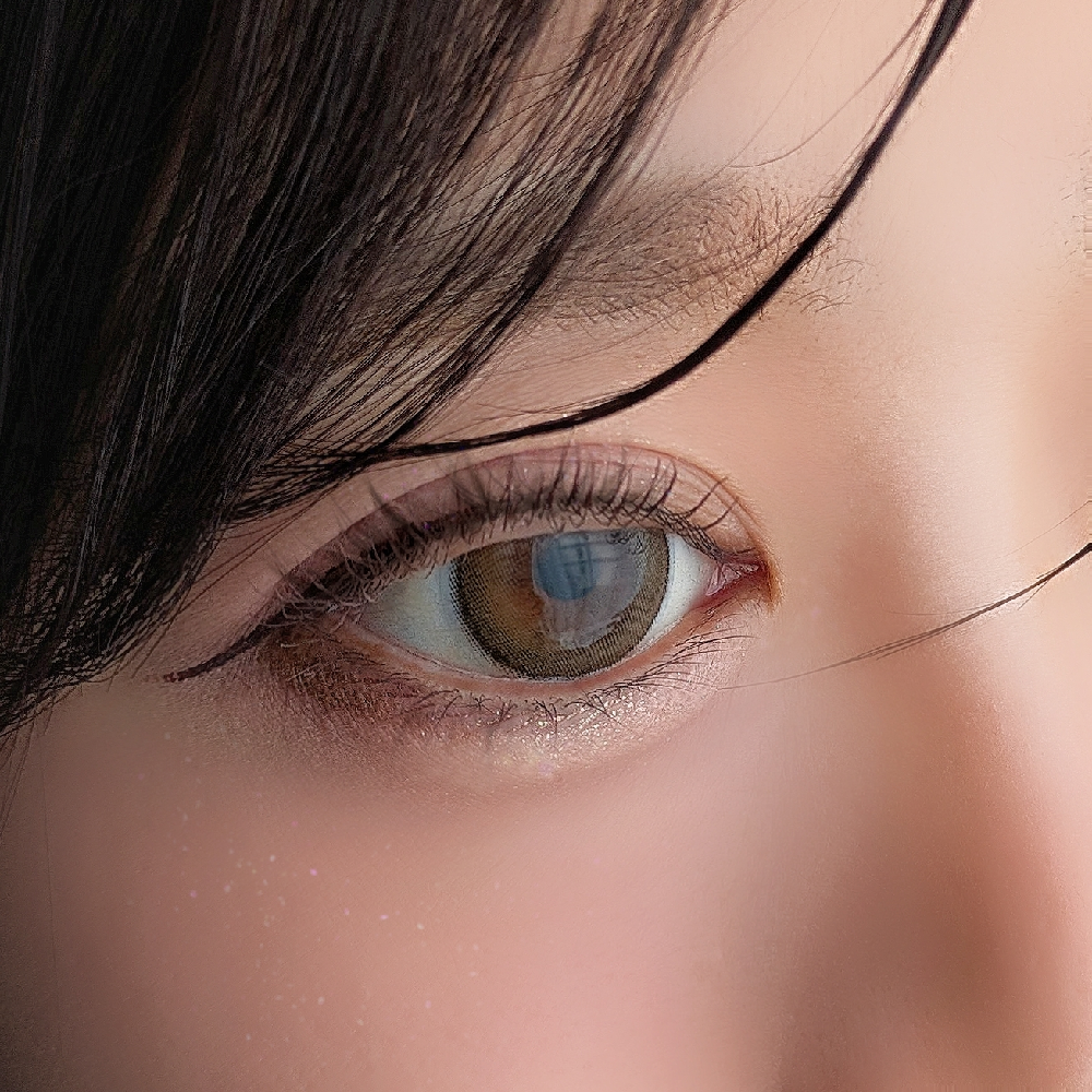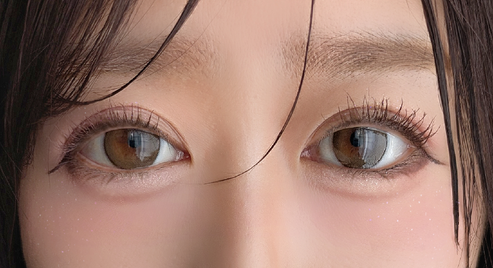 左 無加工カラコン装着すっぴん