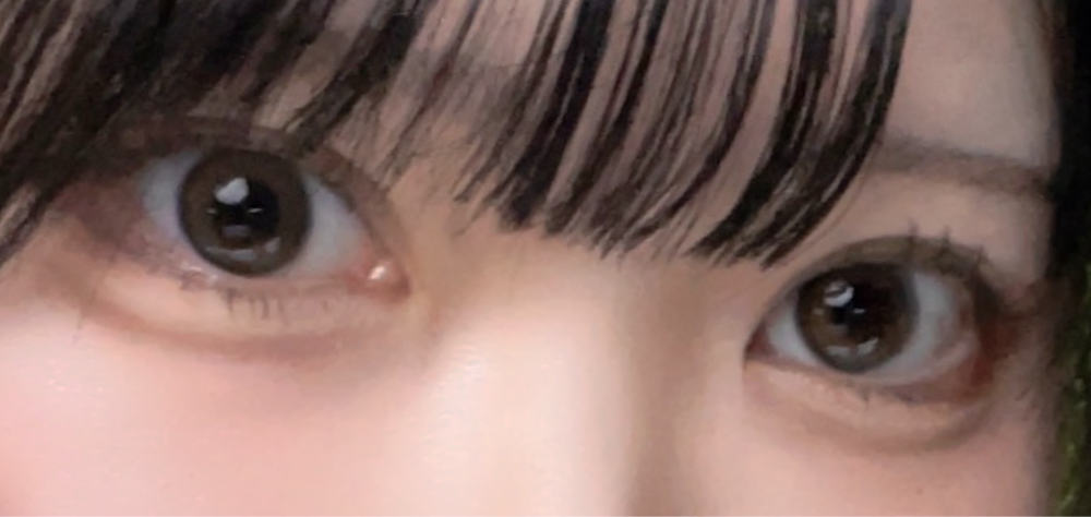 思ってたより暗めで仕事用にするかな…と最初は思ったけど、どんなメイクにもあうし、透明感がえぐい可愛いです。ふんわり太めフチなので体感小さめ(13.2〜3くらい)に見えてありがたい。写真でもちゃんと盛れるからリピ確です。重度のドライアイの人は目薬必須です。